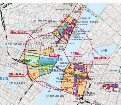 根据规划,“历史之城暨长江文明之心”区域是以两江交汇的南岸嘴为圆心,以3.5公里为半径,以龟山、蛇山、琴台、武昌古城、汉口历史文化风貌街区、汉阳归元片区、月湖片区等为主体,覆盖了两江四岸的核心区域,总用地面积约33平方公里。