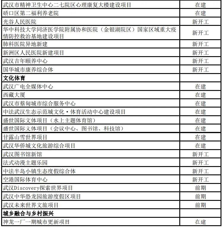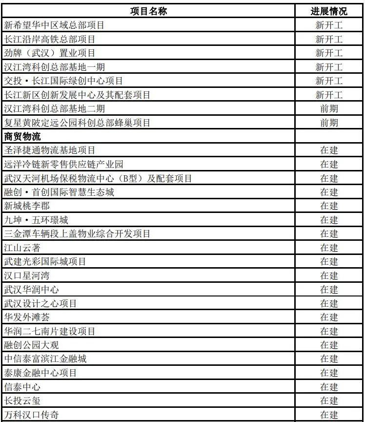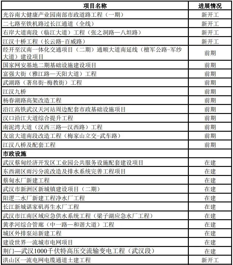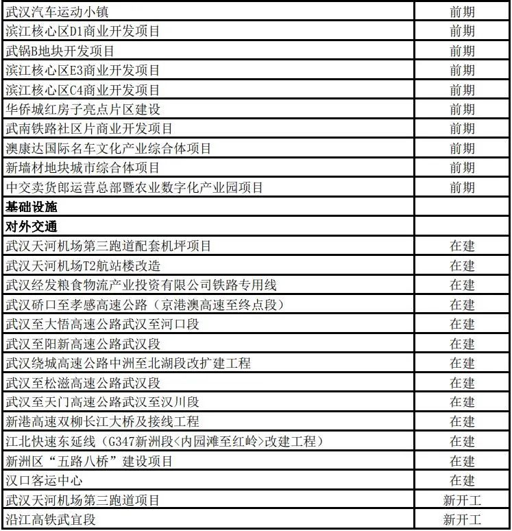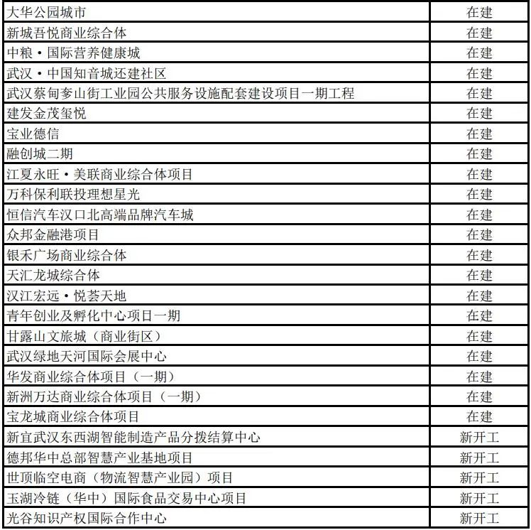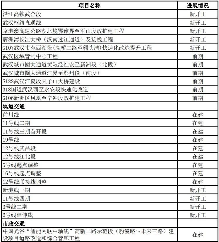 关注度比较高的轨道交通方面,在建的包括前川线、11号线二期、11号线三期首开段、19号线、12号线武昌段、12号线江北段、5号线起点调整、16号线起点调整、12号线联络线调整。新开工4条线路,新港线一期、11号线四期、3号线二期、6号线延伸线。另外,商贸物流中提到了龙湖新荣天街商业综合体前期,没有提及光谷天街。