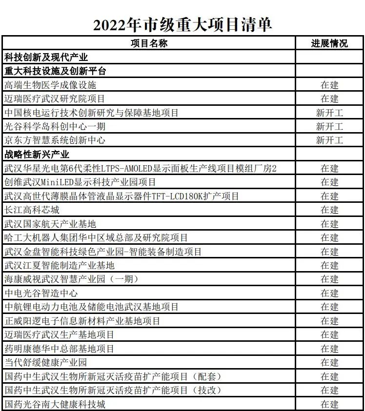 3月3日消息,搜狐焦点获悉,今年,武汉市安排市级重大项目433项,其中在建项目266项、新开工项目101项、前期项目66项,年度计划投资超过2800亿元,支撑全市投资30%以上。3月1日,武汉发改委公布武汉市2022年市级重大项目清单。