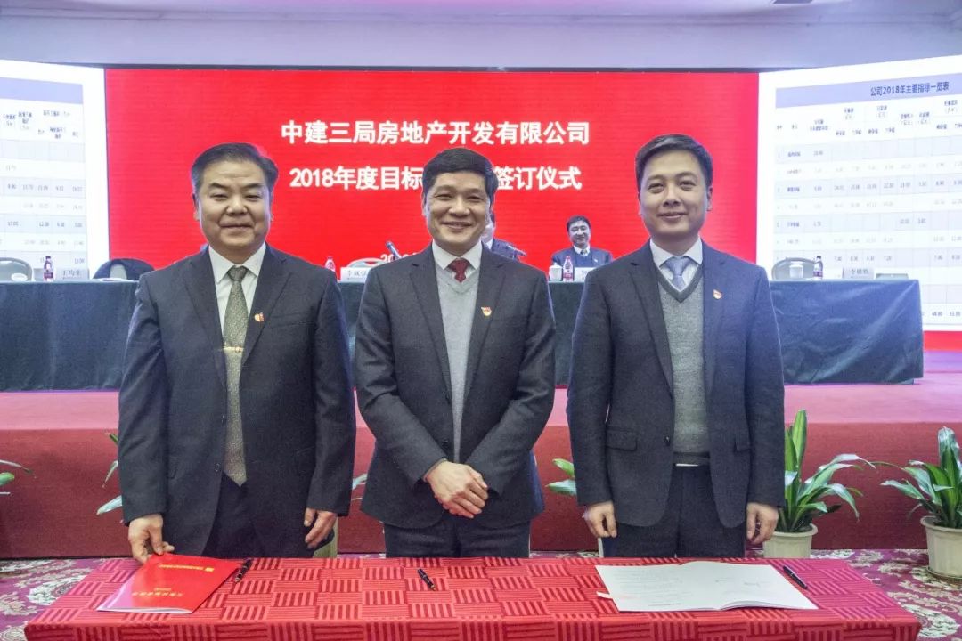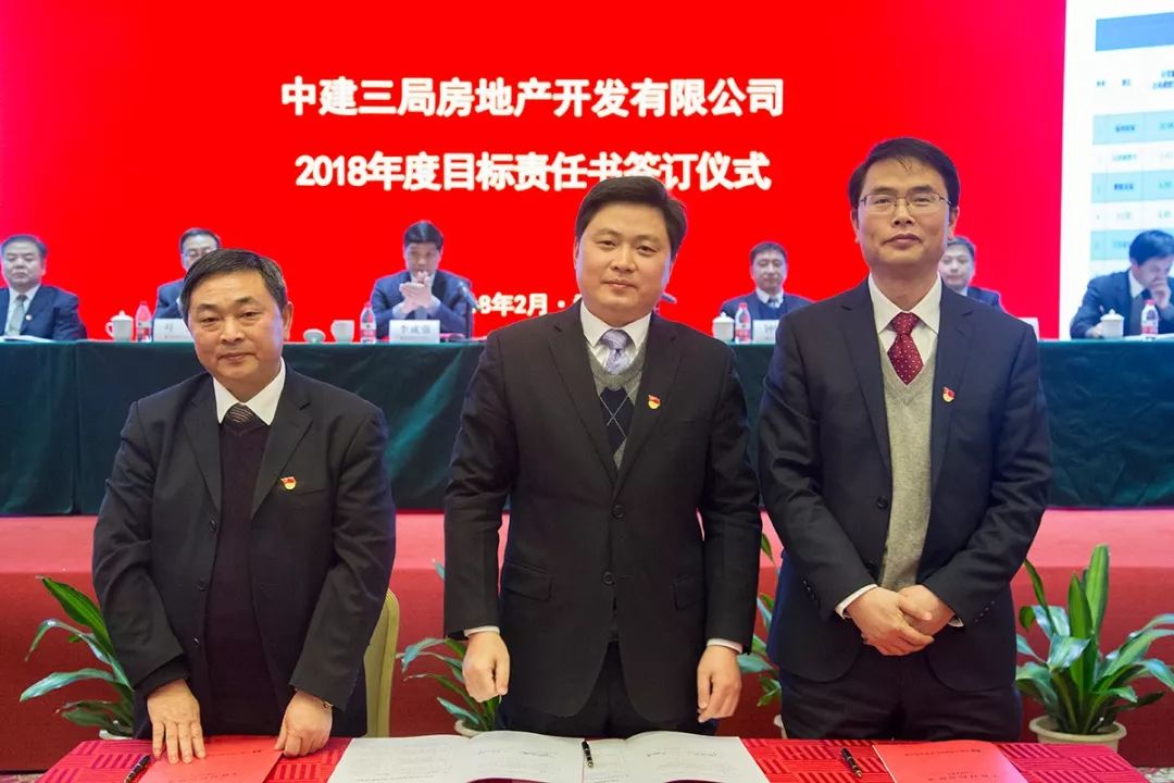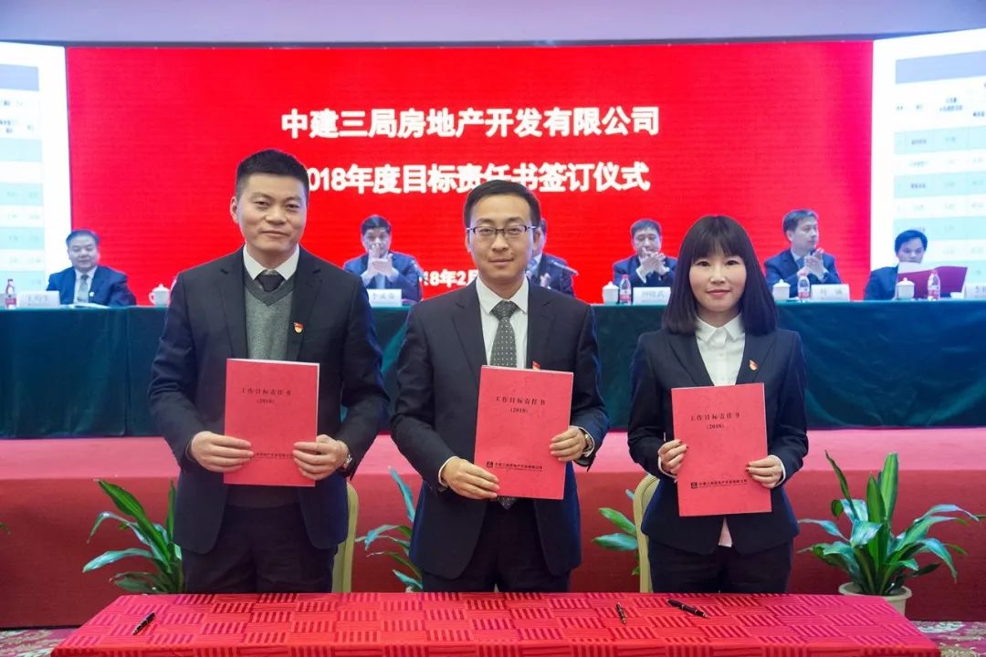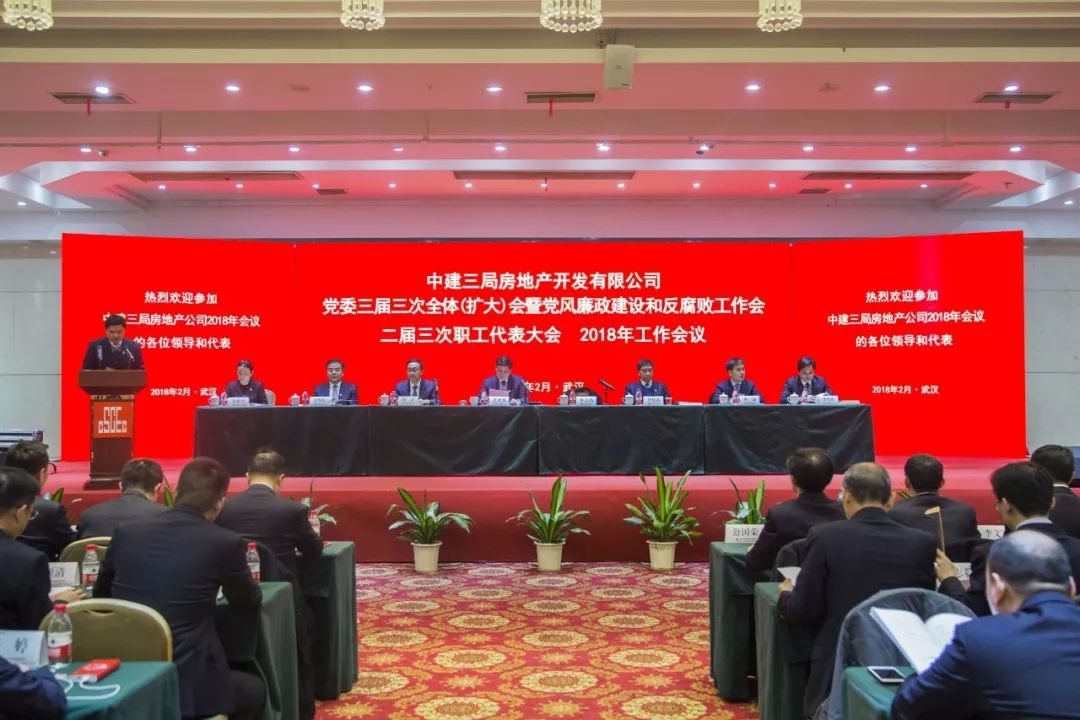 聚焦提档升级,坚守职责使命,奋力跨越百亿平台;突出党建引领,筑牢作风支撑,全力打造全国名企。2月7日,中建三局房地产公司党委三届三次全体(扩大)会议、2018年党风廉政建设和反腐败工作会、二届三次职工代表大会暨2018年工作会在汉成功召开,会议传达了中建三局“三会”精神,全面回顾了2017年企业成绩,明确了2018年发展目标和重点任务,会上还发布了2018年公司新版管理手册,及举行了2018年目标责任状签订仪式。