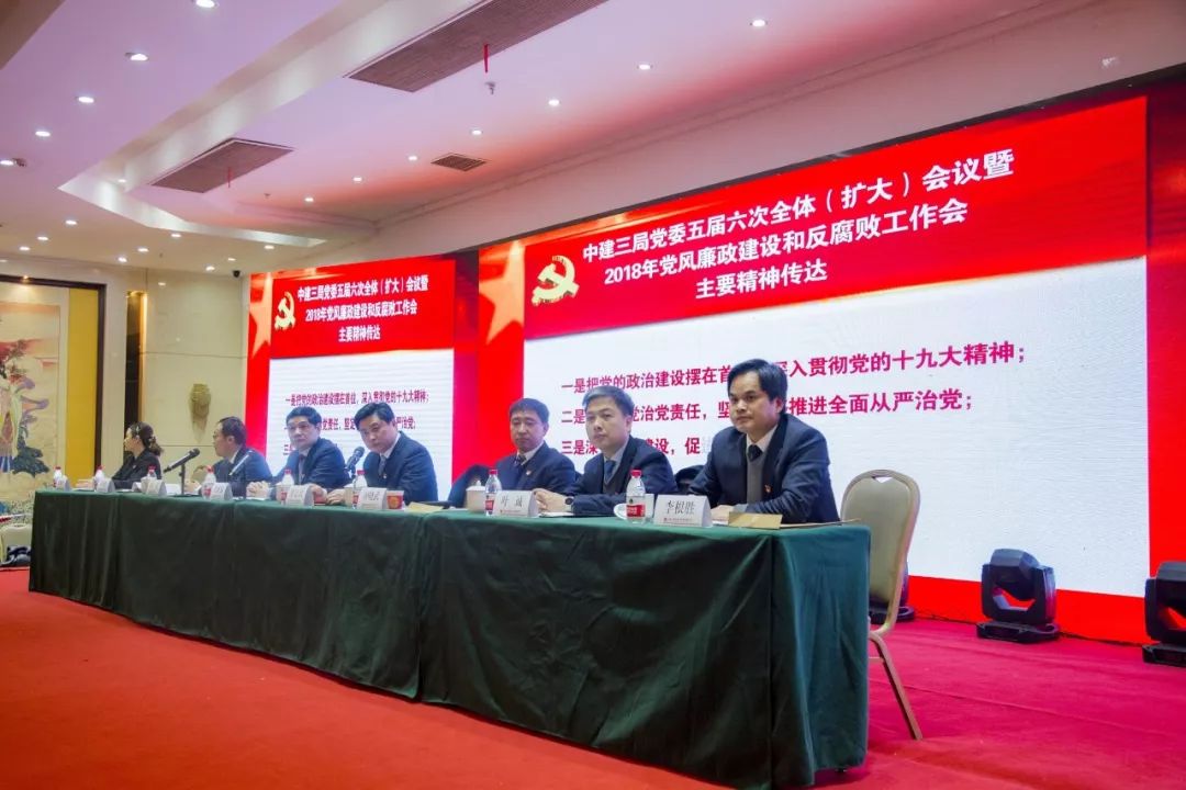 会议首先视频传达了中建三局党委五届六次全体(扩大)会议暨2018年党风廉政建设和反腐败工作会、局九届二次职代会、局2018年工作会精神;党委书记、董事长李成强作企业工作报告;党委副书记、纪委书记、工会主席叶青作党委工作总结和安排说明、党风廉政建设和反腐败工作说明以及2017年职工代表巡视检查情况报告。