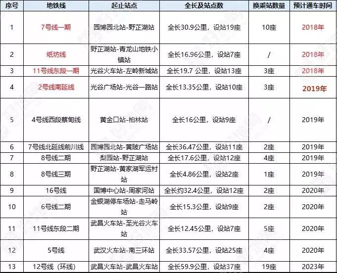 2年后,武汉约10条地铁线路全部通车,覆盖远城区; 10条地铁线,总长度400公里, 其中新增6条、延伸4条。
