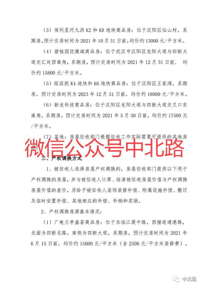 1、建桥片补偿方案为汉阳区统一制式方案。
