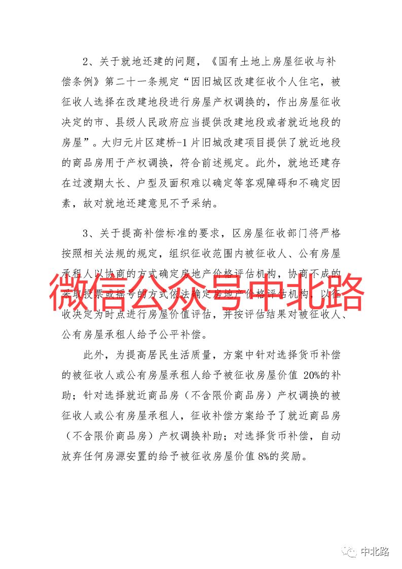 据微信公众号中北路查阅,汉阳区大归元片区建桥1-5片旧城改建项目房屋征收补偿方案分为五个方案,除了拆迁征收范围等少数个性数据不同之外,五个征收补偿方案征求意见及修改情况方面几乎一样。因此,微信公众号中北路不再将相似的文字复制黏贴五次,仅发布“汉阳区大归元片区建桥-1片旧城改建项目房屋征收补偿方案征求意见及修改情况”。