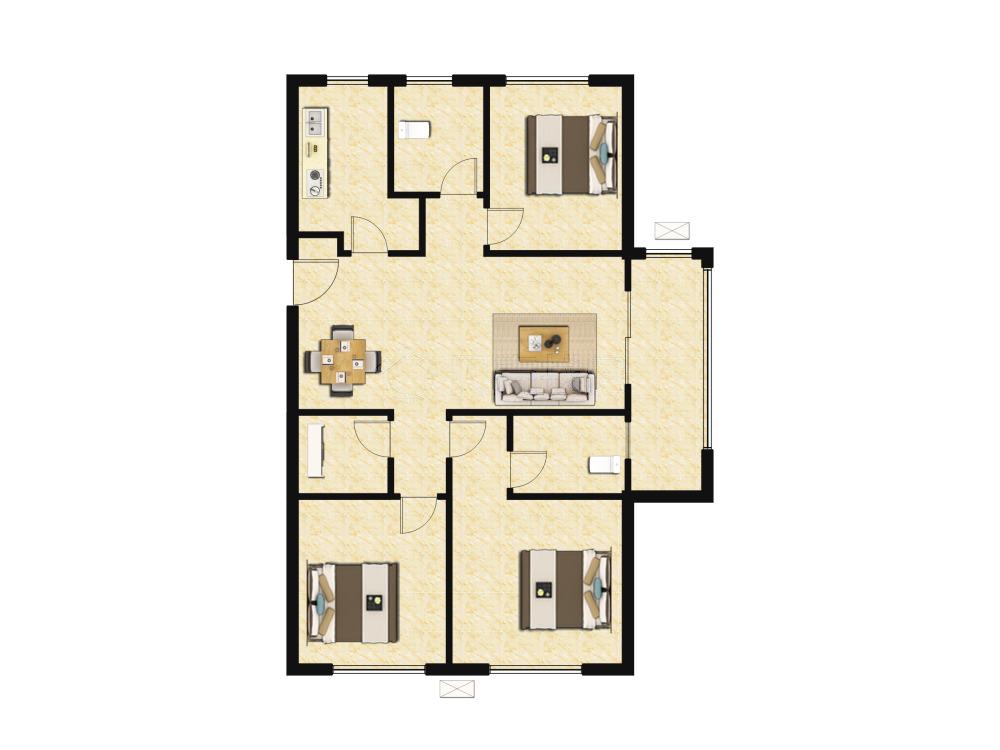 华发中城中央荟建面约87平米户型-3室2厅1卫-87.0m²