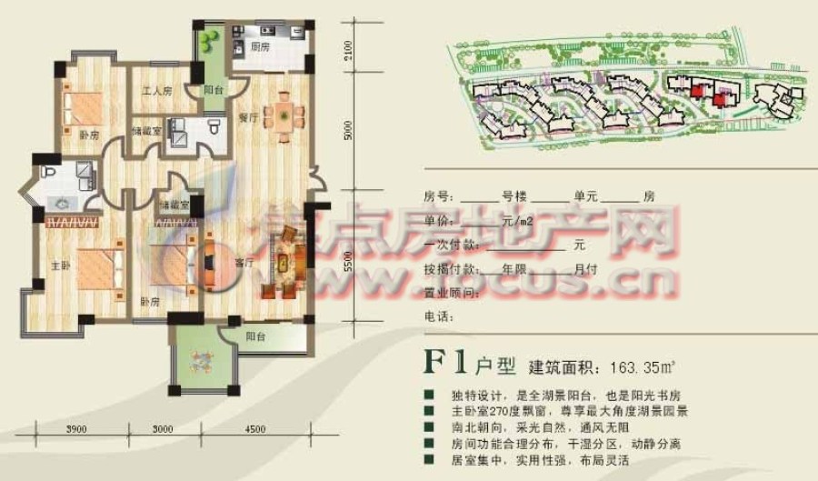 梦湖水岸f1型三室两厅两卫163.35平米-3室2厅2卫-163.35㎡