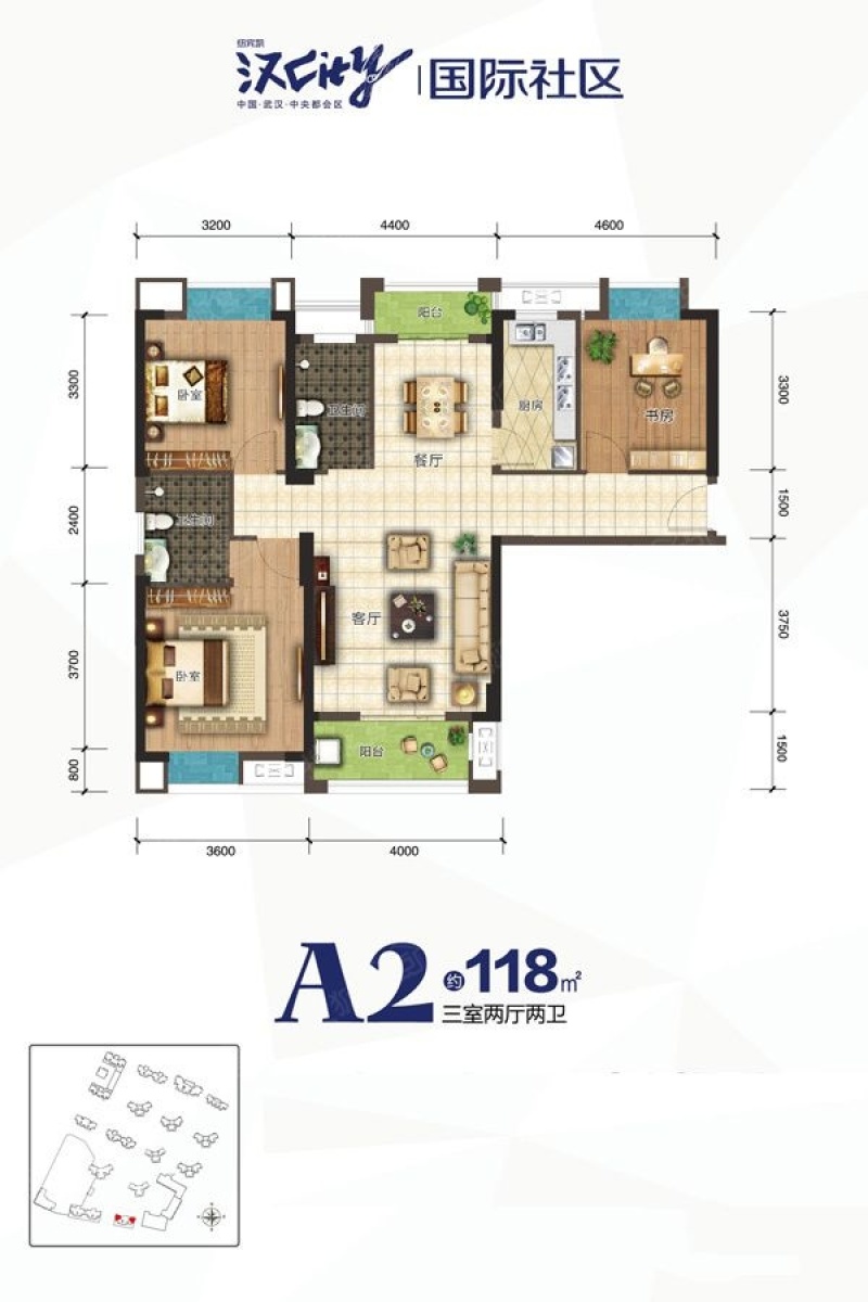K9地块1号楼A2-3室2厅2卫-118.0㎡