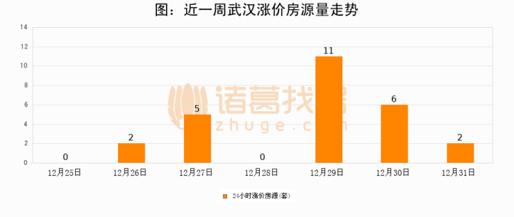 根据诸葛找房数据显示,武汉24小时涨价房源量为2套,较12月30日减少4套,环比下降66.7%。与此同时,涨价房源占比小幅回落,对于购房者来说是一个入市窗口期,购房者可抓住时机入市。