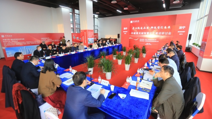1月18日,中建星光城智慧社区建设研讨会在社区现场举行,会议主题是:观摩中建星光城智慧社区建设成果,探索智慧社区实施路径,推进数字湖北。湖北省住房和城乡建设厅副厅长龙宁,湖北省发展和改革委员会、通信管理局、经济和信息化厅,武汉市东湖新技术开发区和九峰街道等政府部门有关负责人;华中科技大学、华中师范大学智慧社区专家;湖北省房地产协会有关负责人;中建三局总经理李琦,副总经理王胜民、李成强,首席信息官丁刚,中建壹品有关负责人等参会。