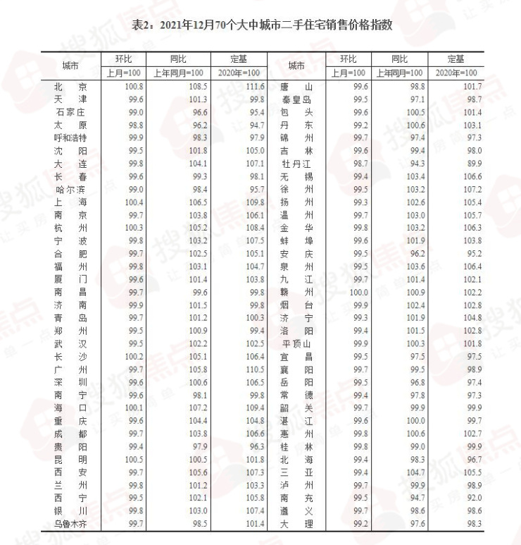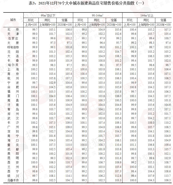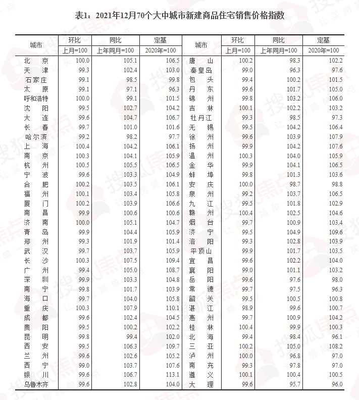 1月17日消息,搜狐焦点获悉,国家统计局公布《2021年12月份70个大中城市商品住宅销售价格变动情况》,对15个一线和热点二线城市新建商品住宅价格变动进行对比,并公布2021年12月70个大中城市新建住宅价格指数。