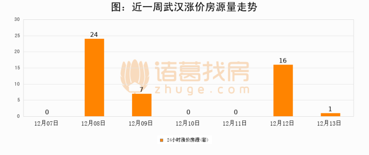 根据诸葛找房数据显示,武汉24小时涨价房源量为1套,较12月12日减少15套,环比下降93.8%。与此同时,涨价房源占比小幅回落,对于购房者来说是一个入市窗口期,购房者可抓住时机入市。