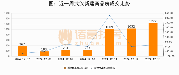 【武汉成交日报】12月13日新房成交1222套;涨价房源1套