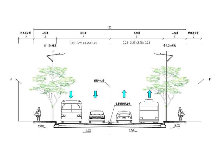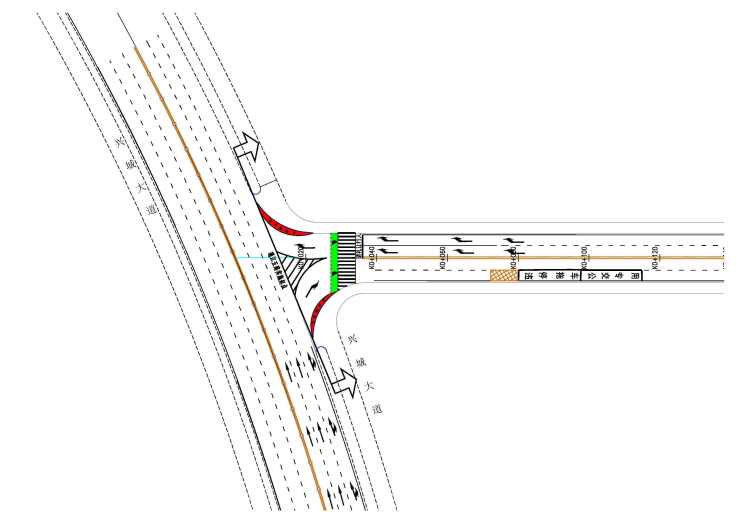 项目位于通用航空及卫星产业园,西起兴城大道,止于规划中的滨江大道,与已建道路兴城大道、薇湖南路、通航大道相交。道路全长1052.75m,道路红线宽20m,双向四车道,设计车速30km/s,道路等级为城市支路。