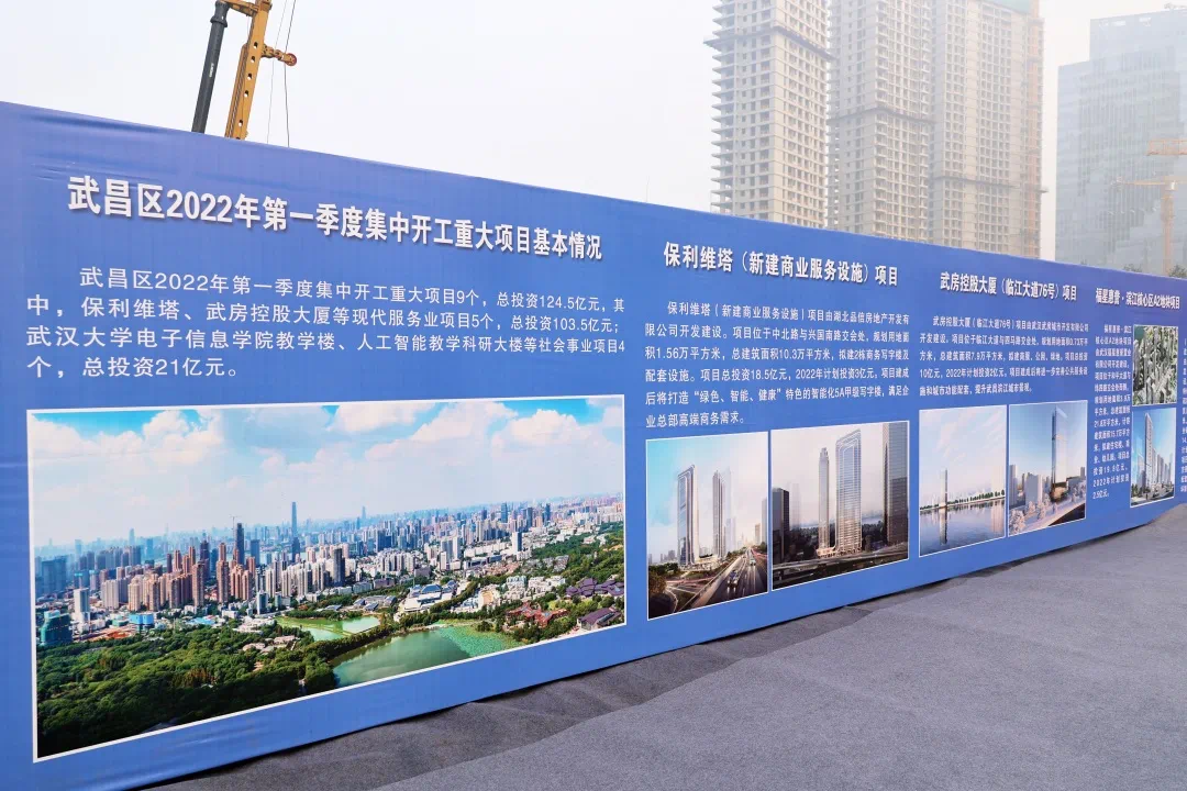 武昌区此次新开工项目包括保利维塔、武房控股大厦、福星惠誉·滨江核心区A2地块、省直机关排名前列幼儿园综合改造项目、武汉大学电子信息学院教学楼、武汉大学人工智能教学科研大楼等9个项目,总投资124.5亿元,涉及现代服务业、社会事业等类型。