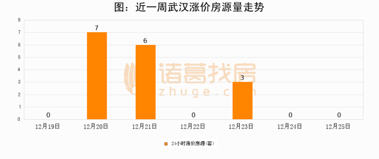 根据诸葛找房数据显示,武汉24小时涨价房源量为0套,较12月24日持平。