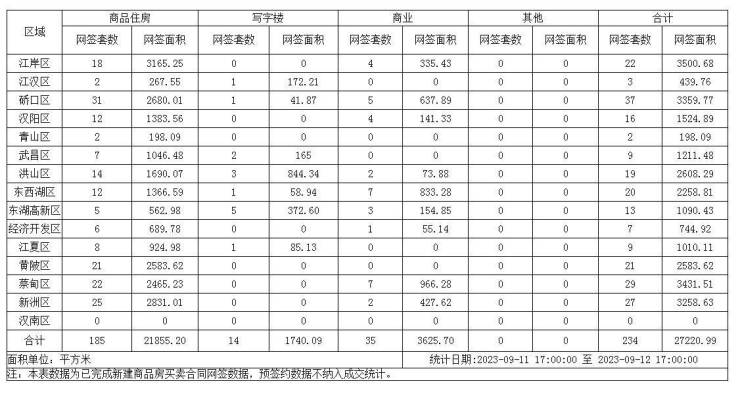 【武汉成交日报】09月12日新建商品住房成交185套