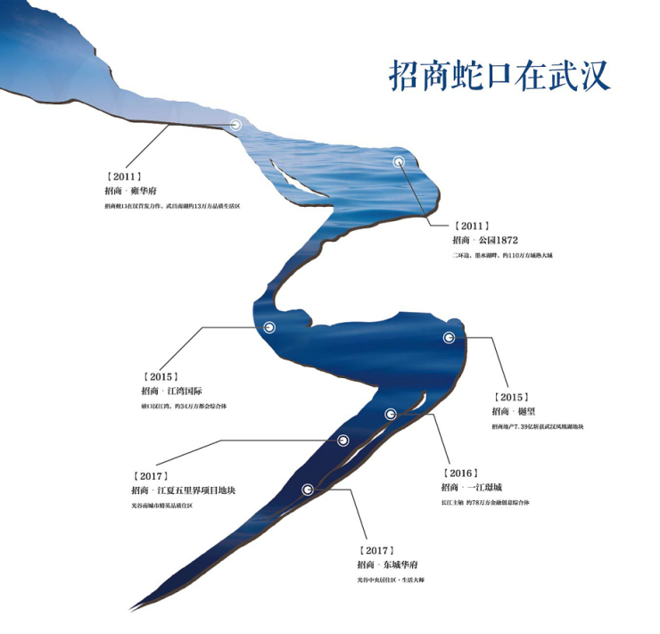 招商局是中央直接管理的重要国有骨干企业,管理资产总额央企排名前列。1979年,招商蛇口成立,精耕地产39载,布局全国46城,已缔造逾200个精品项目,综合实力位列中国上市房企10强。2011年,招商蛇口正式进入江城武汉,立足武汉区域发展与人居革命,7盘齐发,足迹遍布三镇,以稀缺、质优的居住产品,打造区域内改善型人居标杆。