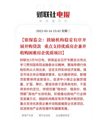 今年3月16日,金融委、银保监会、央行等6大部委更一并给出如支持并购、信贷放松、提振市场、帮助房企化解风险等政策。国家从上至下给出了关于楼市的大量红利和信心。央企等优质房企的优势更为显著。