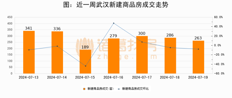 【武汉成交日报】07月19日新房成交263套;涨价房源45套