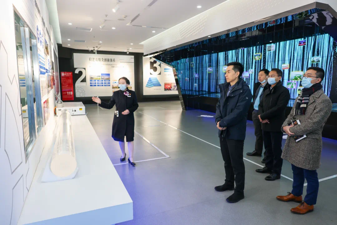 1月13日,中兴通讯高级副总裁苗伟一行参观光谷公共服务中心4号楼展示馆(来源:中国光谷微信)