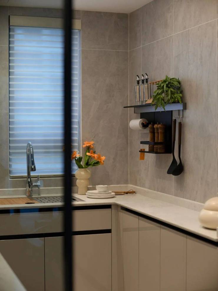 橱柜以科学分区规划收纳系统,将备餐、烹饪与收纳功能巧妙串联,让烟火日常化作全家共享的温馨互动场景,每一寸空间都流淌着生活的温度与诗意。