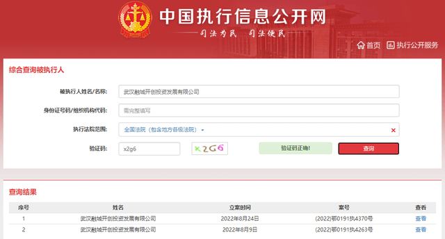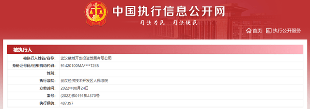 执行标的合计55万余元!武汉融城开创投资发展有限公司新增2条被执行人信息