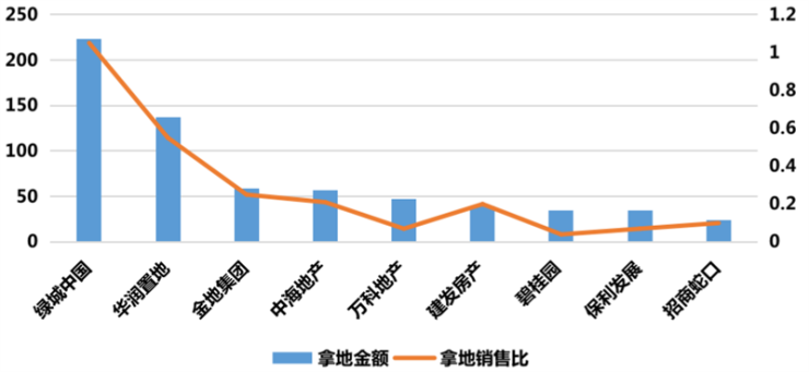 尽管部分房企前两月拿地金额保持先进,但从拿地销售比来看,仅有华润、绿城高于0.4,其余房企均在0.2以下,由此可见整体投资意愿仍然保持低位。