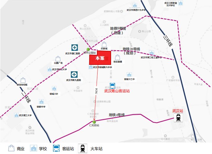 奥园城市广场位于青山区,毗邻和平公园,紧靠冶金大道和工业路,周边交通便利,临近客运站、地铁站(4号线、5号线在建、20号线规划中)、火车站。拥有丰富的配套资源: