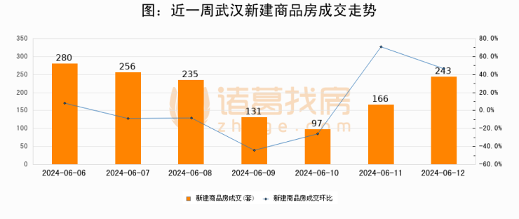 【武汉成交日报】06月12日新房成交243套;涨价房源82套