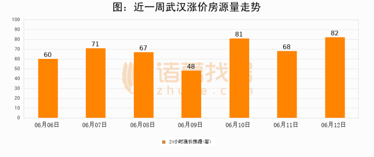 根据诸葛找房数据显示,武汉24小时涨价房源量为82套,较06月11日增加14套,环比上涨20.6%。与此同时,涨价房源占比小幅扩大,业主信心有所提升。