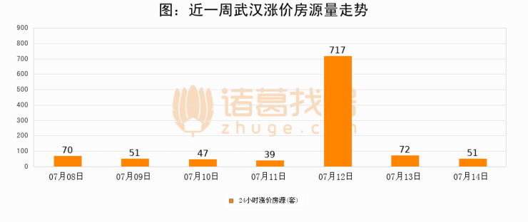 根据诸葛找房数据显示,武汉24小时涨价房源量为51套,较07月13日减少21套,环比下降29.2%。与此同时,涨价房源占比小幅回落,对于购房者来说是一个入市窗口期,购房者可抓住时机入市。