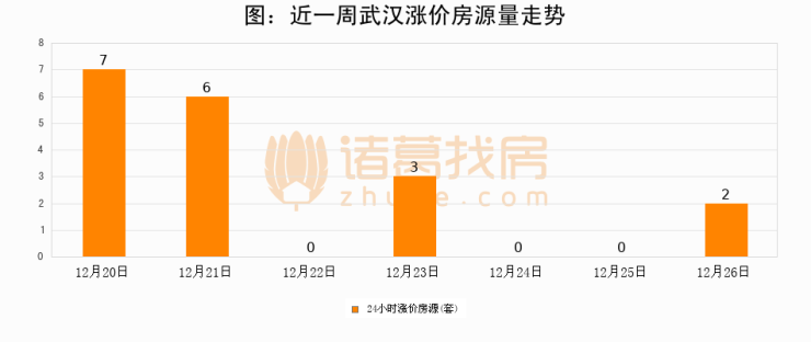 根据诸葛找房数据显示,武汉24小时涨价房源量为2套,较12月25日增加2套,环比上涨0%。与此同时,涨价房源占比小幅扩大,业主信心有所提升。
