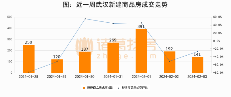 【武汉成交日报】02月03日新房成交141套;涨价房源44套