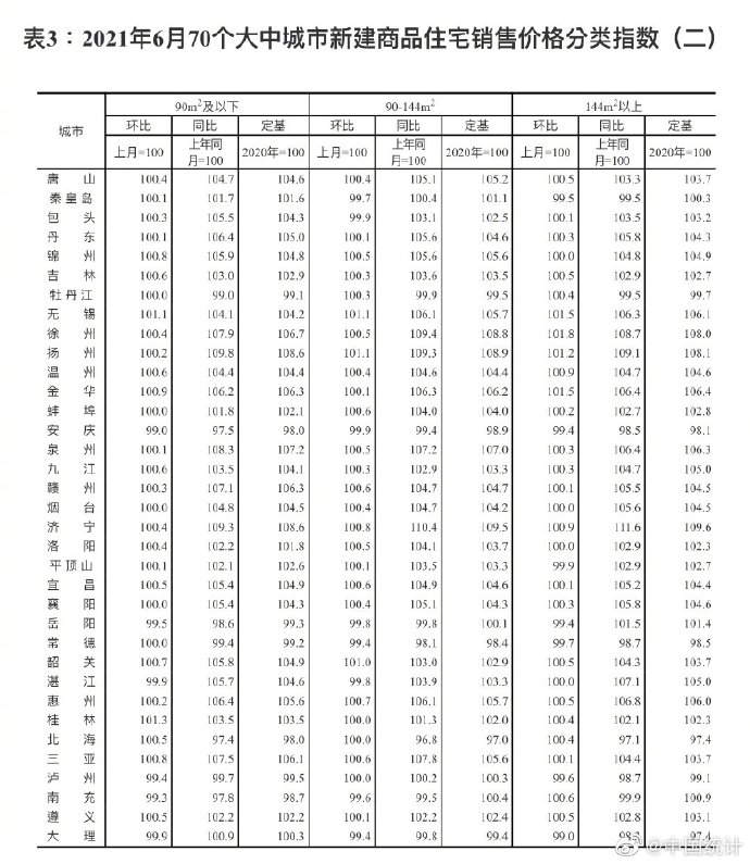 2021年6月份70个大中城市商品住宅销售价格变动情况