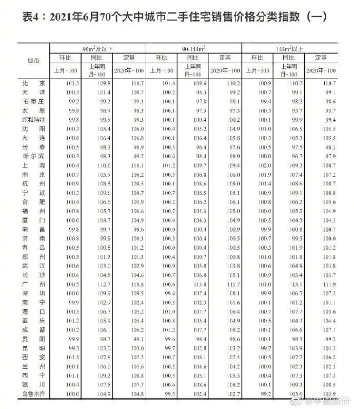 据测算,6月份,一线城市新建商品住宅销售价格同比上涨6.1%,涨幅比上月微扩0.1个百分点;二手住宅销售价格同比上涨10.5%,涨幅比上月回落0.3个百分点。二、三线城市新建商品住宅销售价格同比分别上涨4.8%和3.7%,涨幅比上月分别回落0.2和0.1个百分点;二手住宅销售价格同比分别上涨3.5%和2.6%,涨幅均与上月相同。
