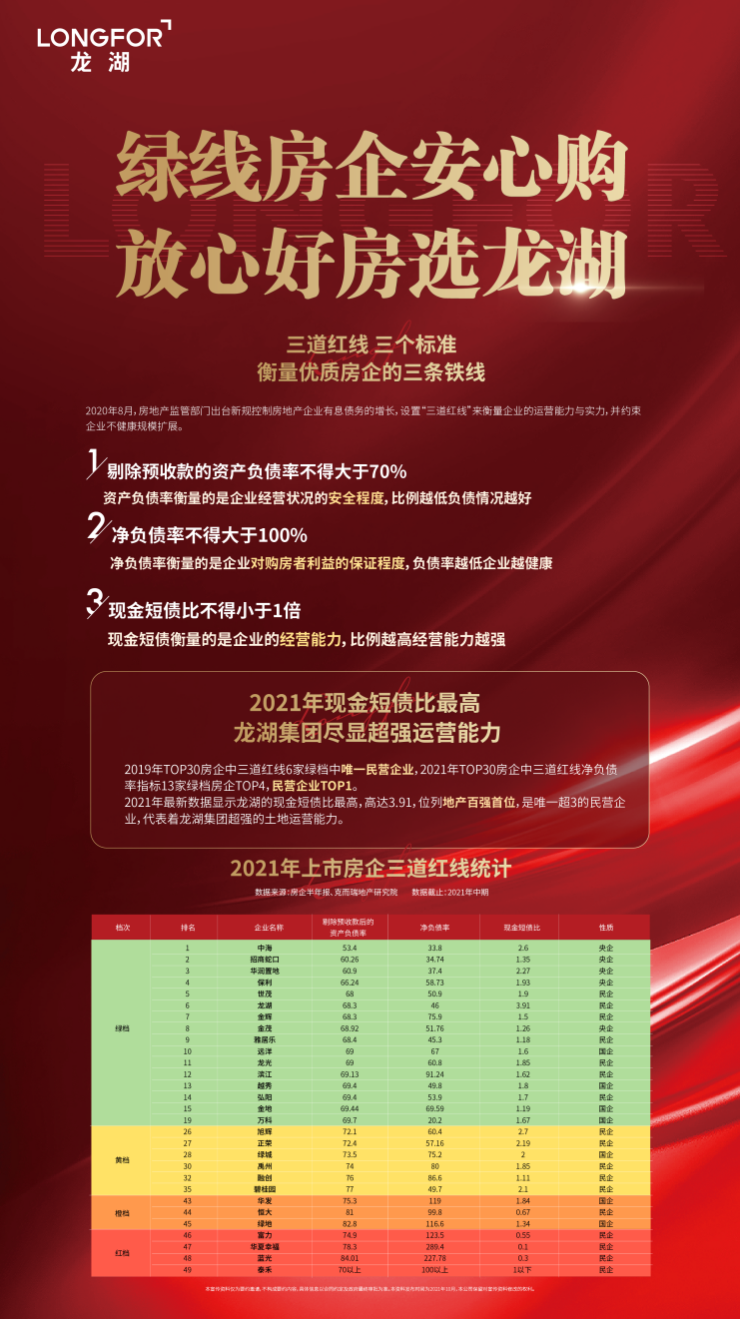 而在品牌安全感方面,龙湖已经连续5年保持“三道红线”全部绿档,是绿档房企中为数不多的民企,堪称地产界的“三好学生”!面对充满挑战与不确定性的楼市,龙湖集团的一系列财务指标,都维持在了较优水准。安心买房选龙湖,已经成了越来越多买房人的共识。