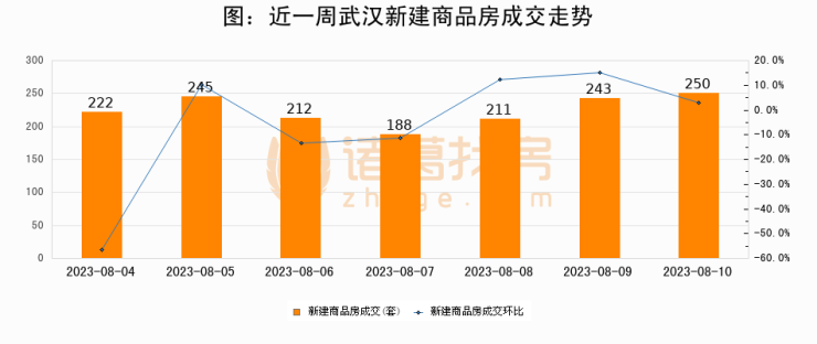 【武汉成交日报】08月10日新房成交250套;涨价房源136套
