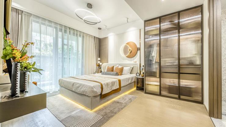 其中,系统门窗隔音运用的是世界三大门窗品牌之一的 YKK 门窗系统,它也是国内高端住宅的同品牌。超强的隔音及抗风压效果,极大避免外部城市噪音的干扰问题,为业主提供了一个安心的居住环境。