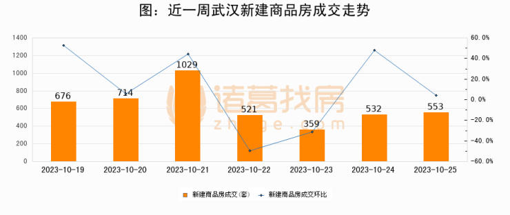【武汉成交日报】10月25日新房成交553套;涨价房源225套