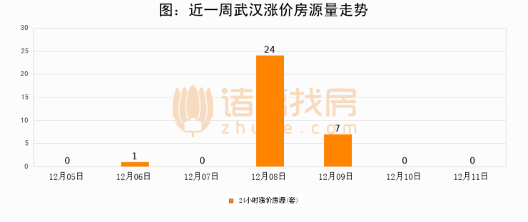 根据诸葛找房数据显示,武汉24小时涨价房源量为0套,较12月10日持平。