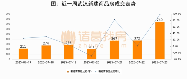 【武汉成交日报】07月23日新房成交740套;涨价房源1套