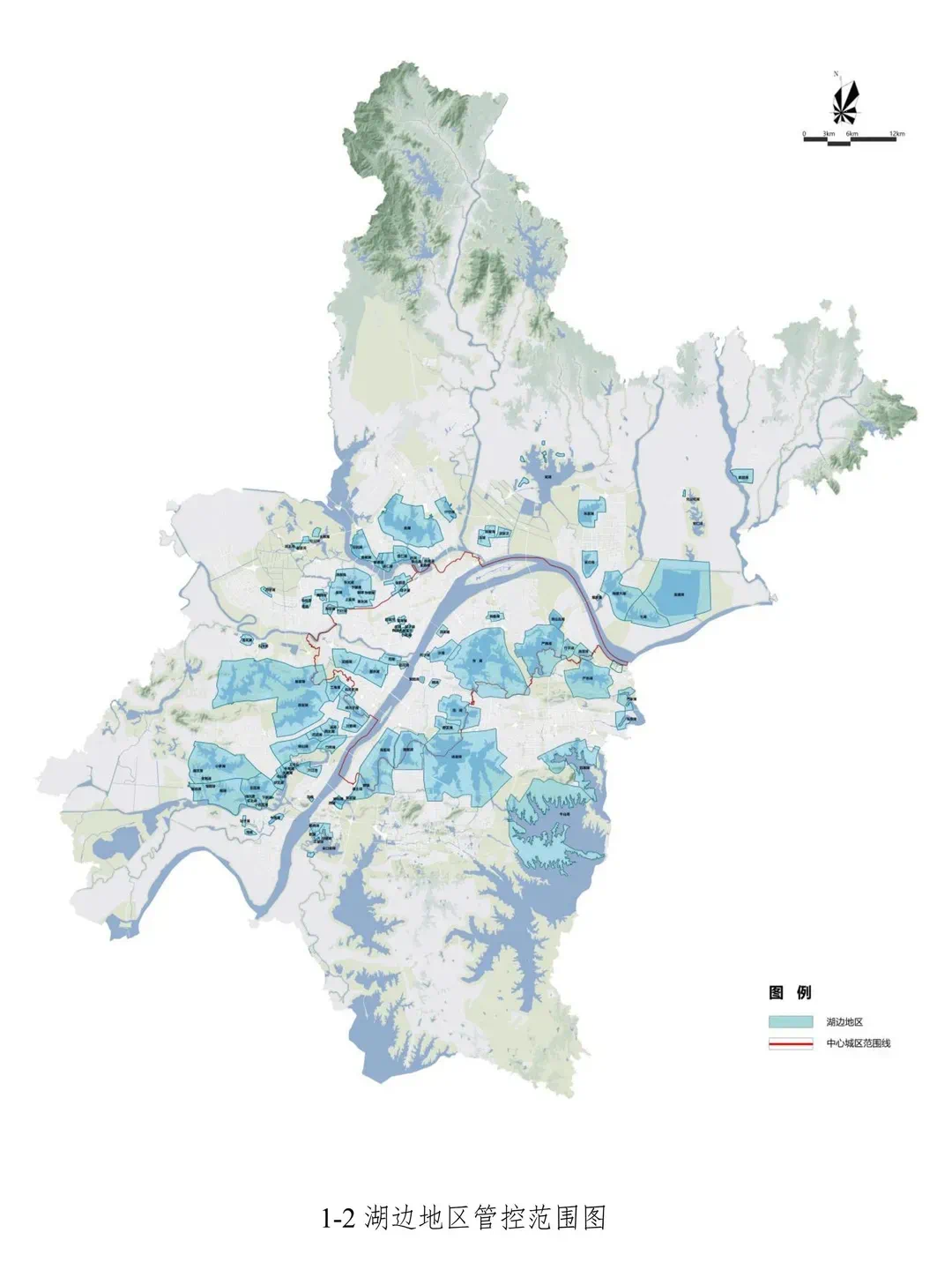 新《规定》将政策管控范围由之前的中心城区,扩展至全市域,包括了城镇开发边界内的江边、湖边、山边地区。江边地区以长江、汉水水系蓝线为基地,结合视距及城市道路确定;湖边地区以湖泊蓝线为基础,结合视距及城市道路确定;山边地区以山体本体线为基础,结合视距及城市道路确定。共涉及长江、汉江、109个湖泊、127座山体的周边区域。