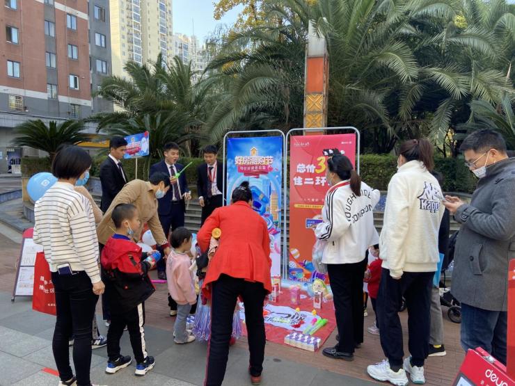 活动期间,贝壳合作品牌的经纪人们带着融创楼盘优惠信息的海报展架和各类礼品出街,千场社区活动吸引了周边众多居民的驻足问询。