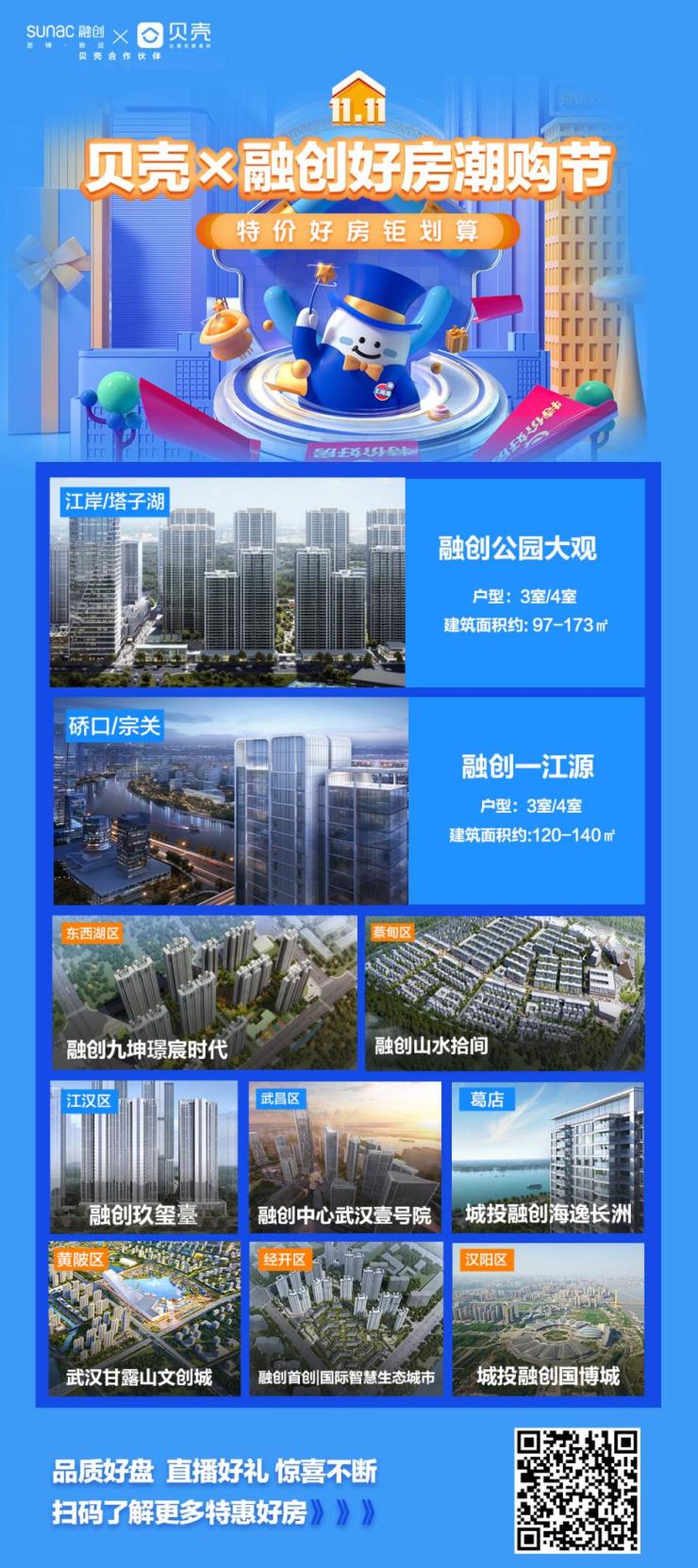 11月1日-11月28日,贝壳携手融创,在武汉共同打造“贝壳×融创好房潮购节-特价好房钜划算”双11 品牌活动。据悉,此次活动除了线上特价房、折扣优惠、多重玩法外,还有贝壳合作品牌门店的千场社区活动出街,亮相武汉各大社区、商圈,为武汉居民带来超高品质购房体验。