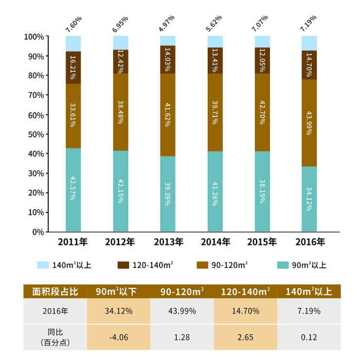 数据显示,在2011-2016年间,武汉市小户型住宅成交占比明显下降,而大户型改善需求大增,在讲究不将就的品质生活时代,家需要满足每一位家庭成员的居住需求,大户型 才是未来大“室”所趋。