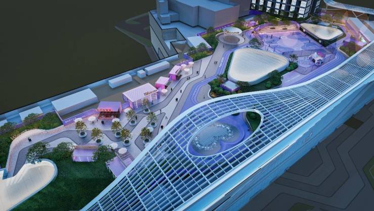 新荣天街打造汉口烟火、焕新中庭、生态聚落、都“汇”CLUB,4大亮点空间,融合地域文化和生态未来理念,带来更有武汉味的天街。值得一提的是,新荣天街屋顶部分以天空运动公园为主题,设置有天际港湾、烟火市集、天空舞台、热力跑道、记忆穿越、酷玩篮球、光和乐园7大主题区域,着重刻画烟火生活的剪影,塑造武汉未来新都。