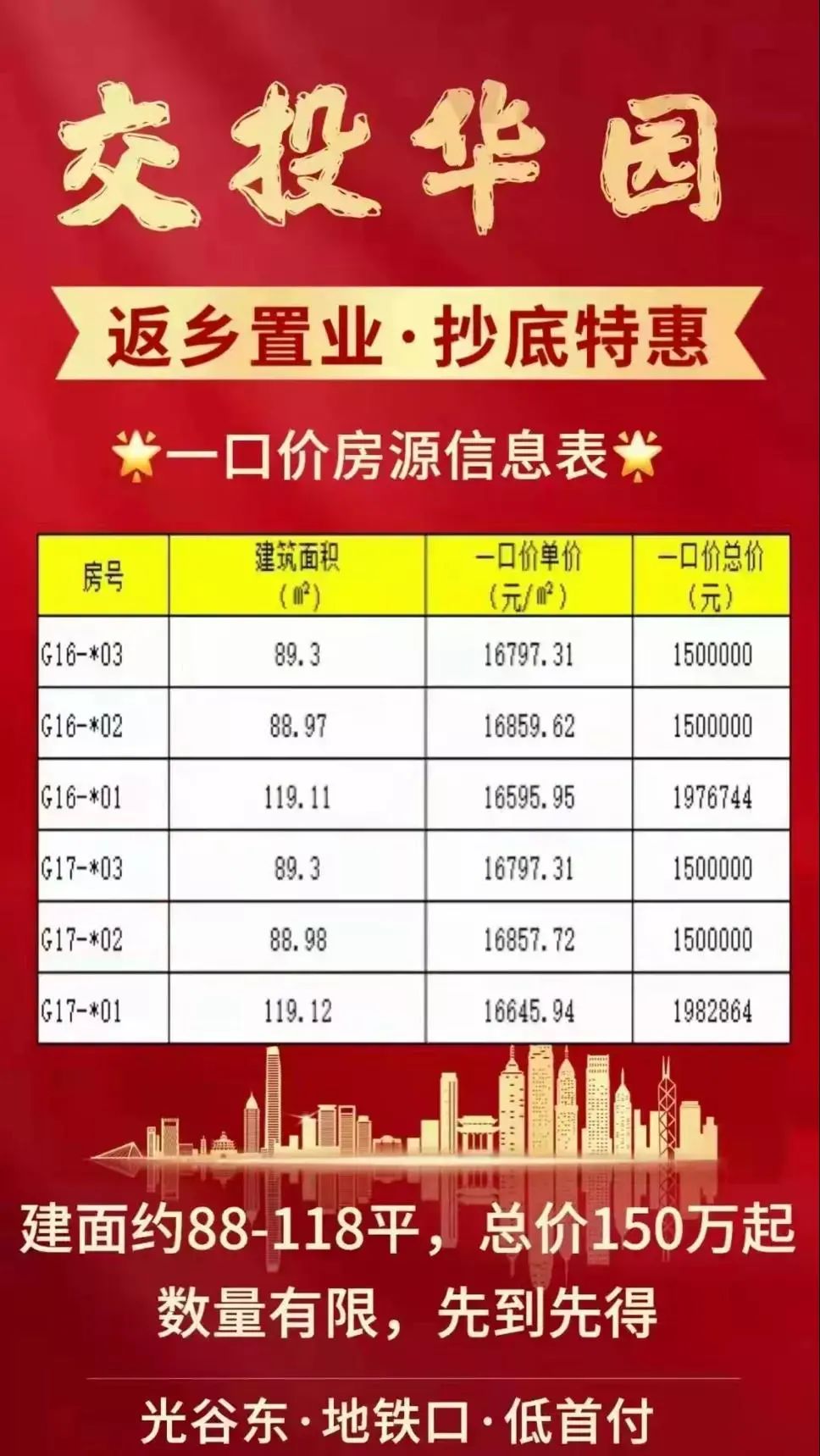 目前整体带装修销售均价约27000元/平,目前根据不同区域的返乡群体,推出12套特价房源,3个10楼以下的低楼层,9个10楼以上的高楼层,还有20、30多层的好楼层,整体单价较低约2.4万/平起,总价较高直降17万。