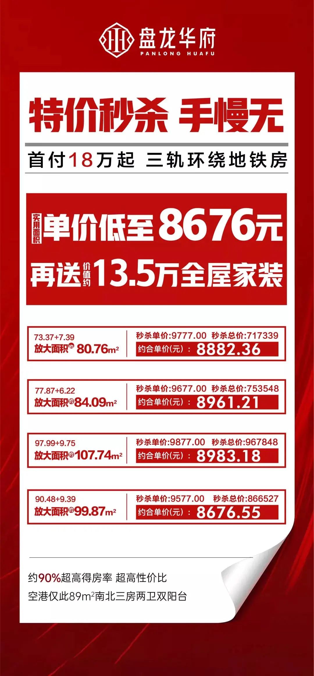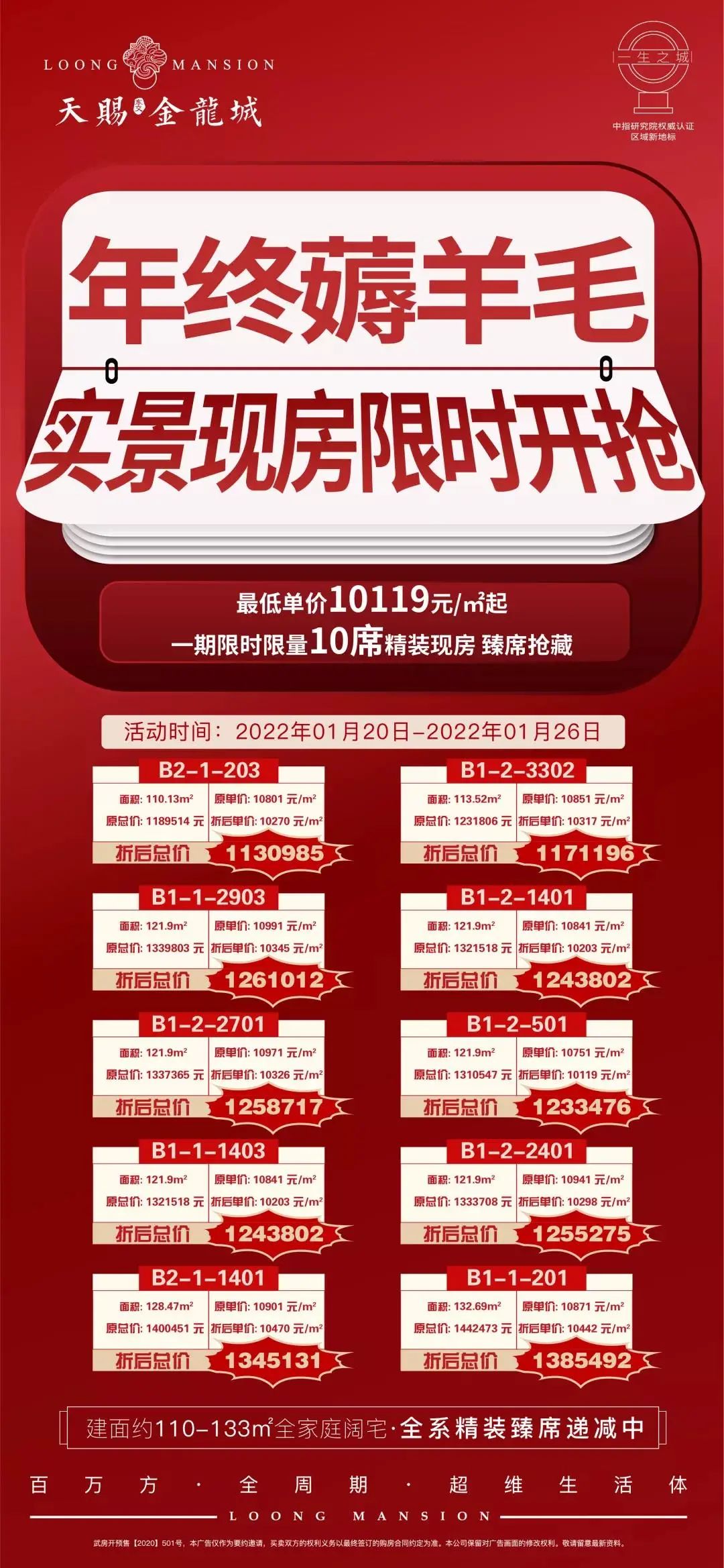 天赐金龙城上期加推精装改毛坯,毛坯备案均价约9584元/平,下降1492元/平,因此推出的特价房分为两种: