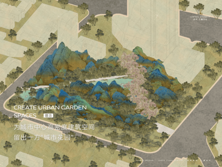 1、理念:为城市中心高密度建筑空间,留出一方“城市花园”。