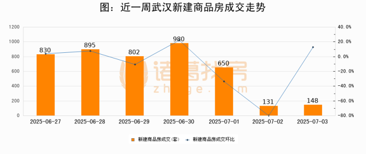 根据武汉市住房保障和房屋管理局数据显示,2025年07月03日武汉新建商品房成交148套,较昨日增加17套,环比上涨13%